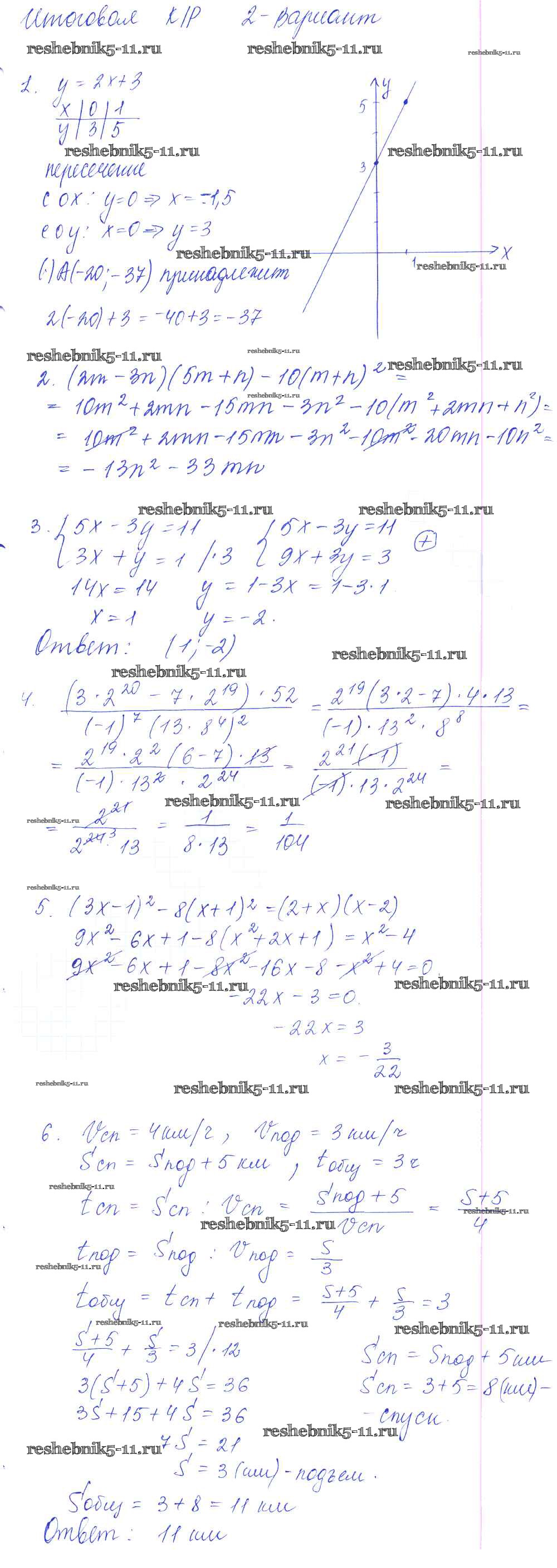 Готовая домашняя работа с ответами по Алгебре за 7 класс Звавич, Дьяконова Дидактические материалы УМК Экзамен 2018 ФГОС - Итоговая контрольная работа Вариант 2
