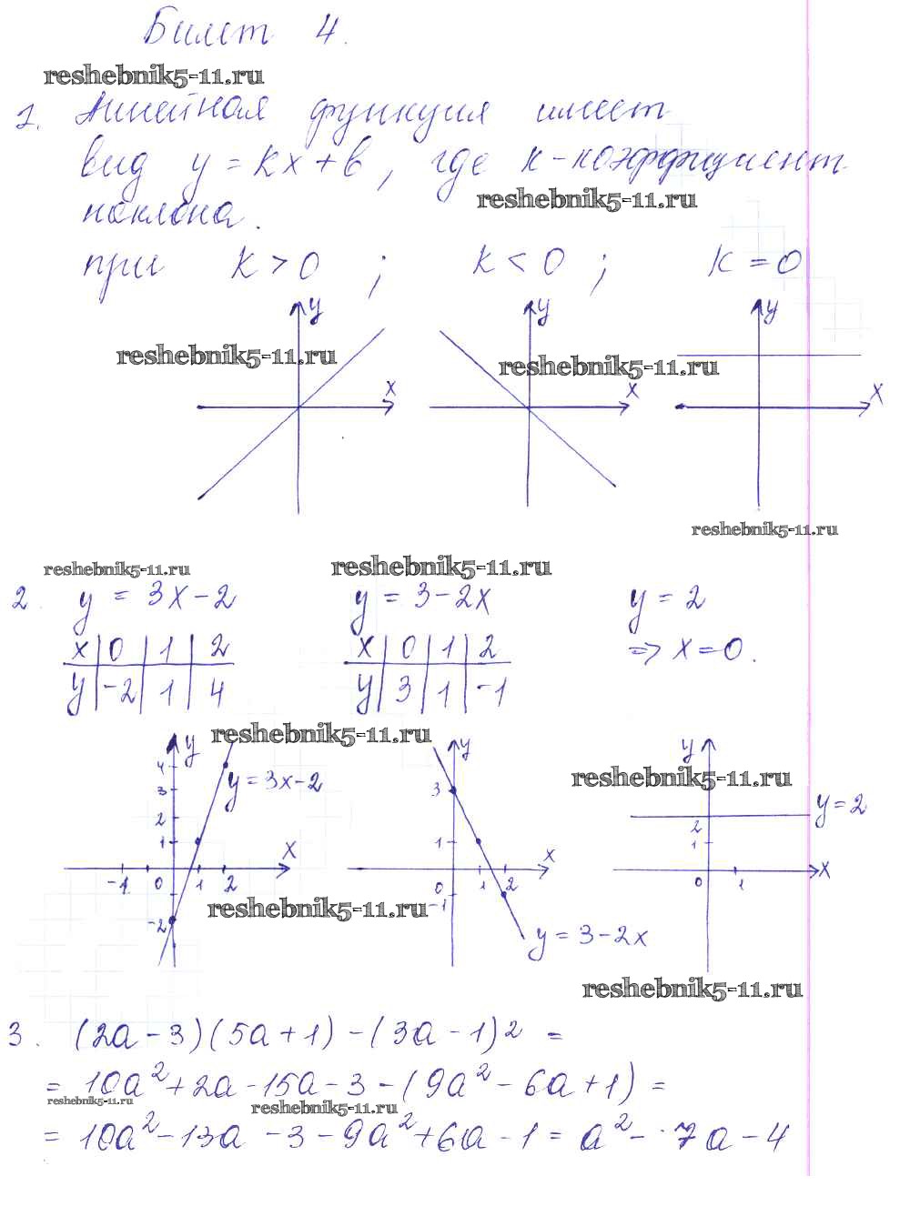 Готовая домашняя работа с ответами по Алгебре за 7 класс Звавич, Дьяконова Дидактические материалы УМК Экзамен 2018 ФГОС - Билеты 4