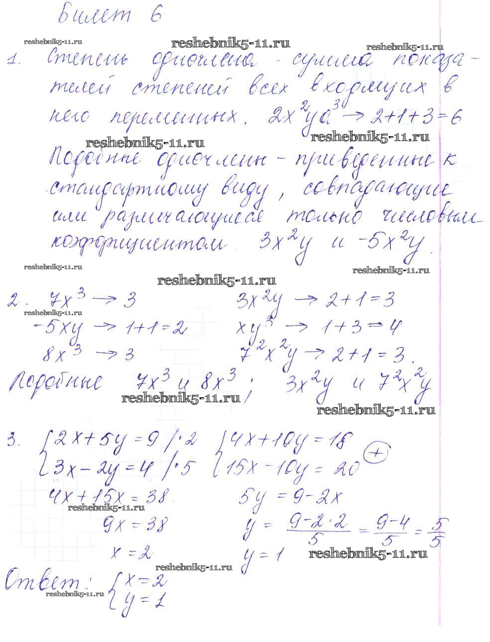 Готовая домашняя работа с ответами по Алгебре за 7 класс Звавич, Дьяконова Дидактические материалы УМК Экзамен 2018 ФГОС - Билеты 6