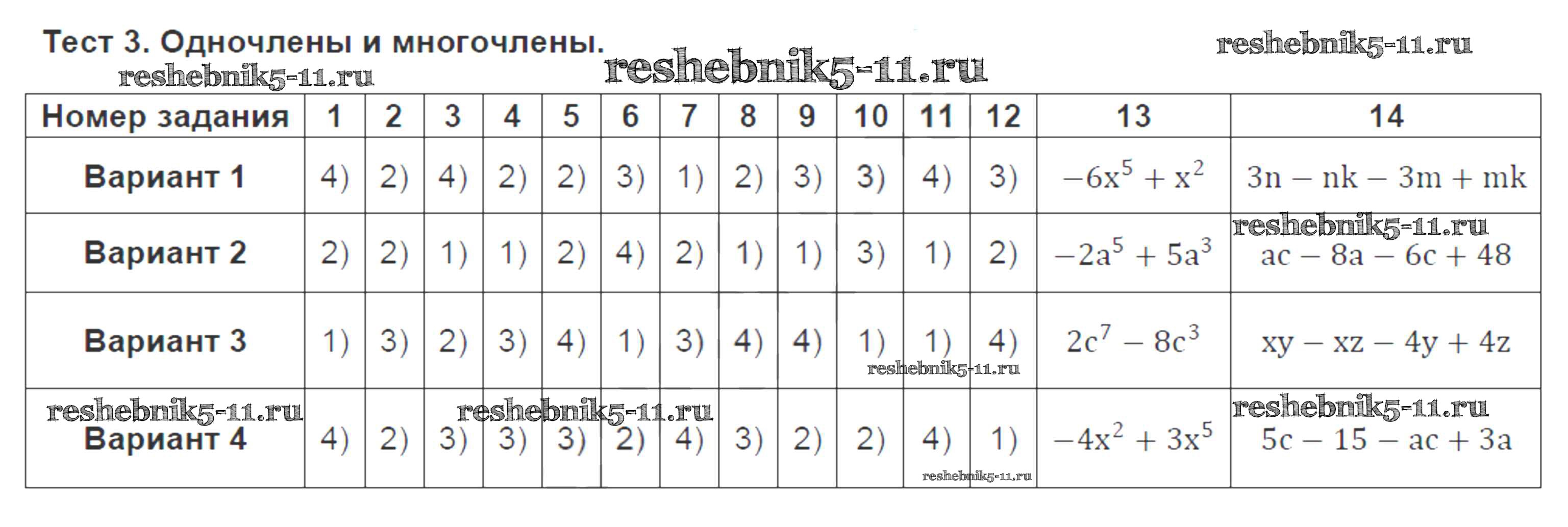 Готовая домашняя работа с ответами по Алгебре за 7 класс Ткачева Тематические тесты Просвещение 2018 ФГОС - Основные тесты 3