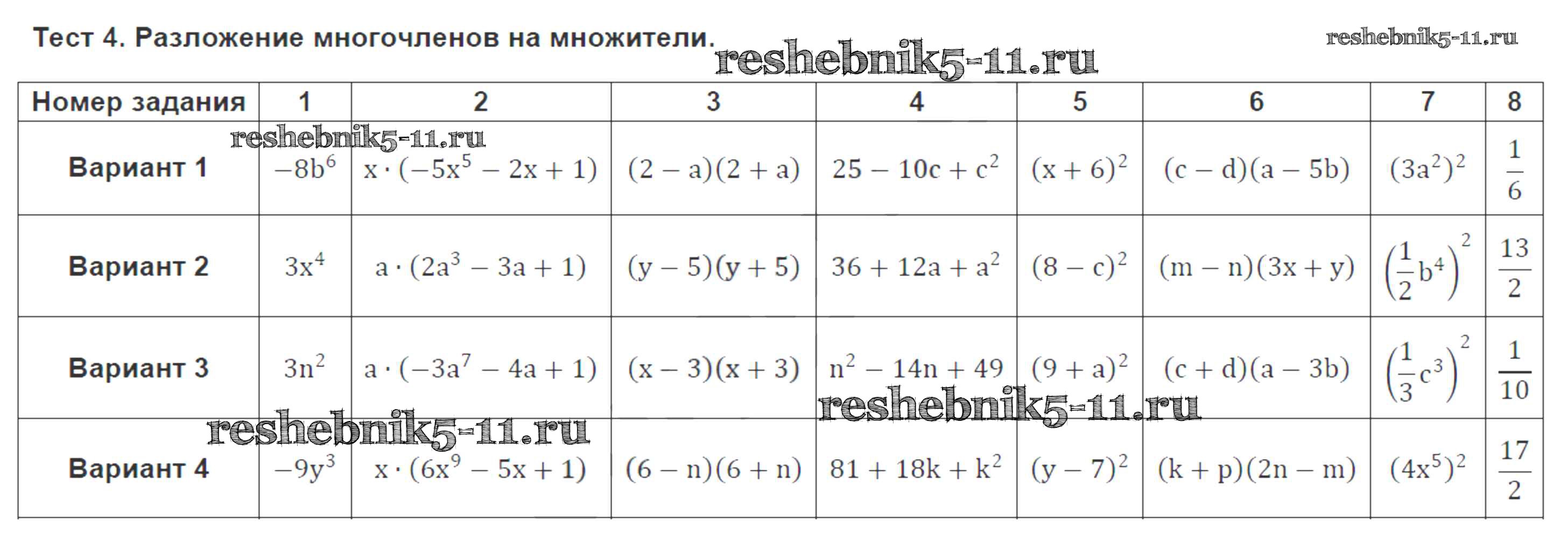 Готовая домашняя работа с ответами по Алгебре за 7 класс Ткачева Тематические тесты Просвещение 2018 ФГОС - Основные тесты 4