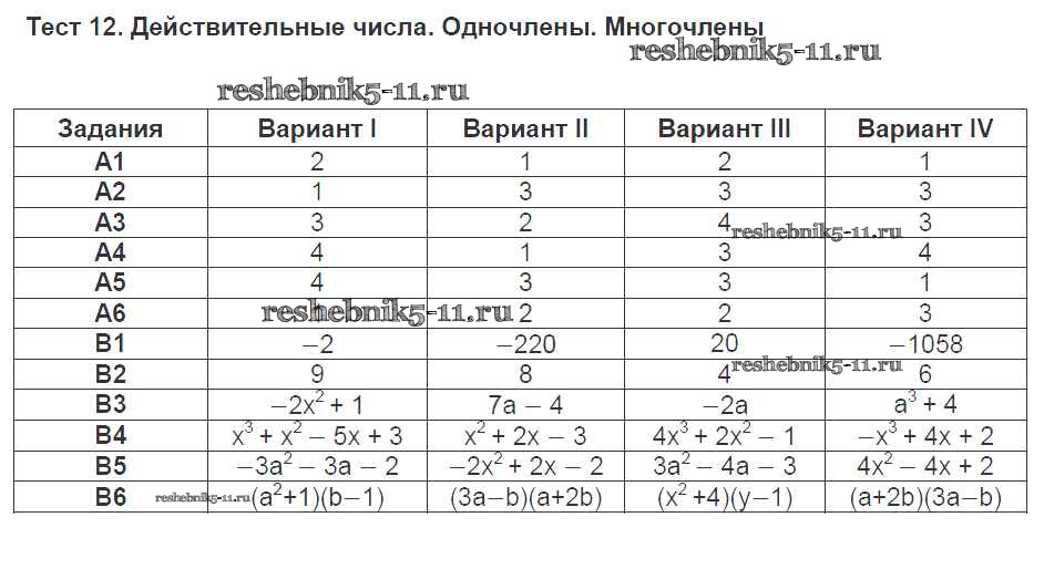 Готовая домашняя работа с ответами по Алгебре за 7 класс Журавлев, Ермаков, Перепелкина, Свентковский Тесты УМК Экзамен 2013 ФГОС - Тесты 12