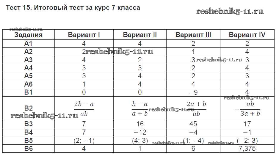 Готовая домашняя работа с ответами по Алгебре за 7 класс Журавлев, Ермаков, Перепелкина, Свентковский Тесты УМК Экзамен 2013 ФГОС - Тесты 15