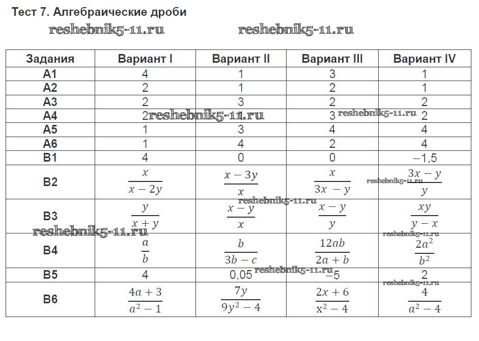 Готовая домашняя работа с ответами по Алгебре за 7 класс Журавлев, Ермаков, Перепелкина, Свентковский Тесты УМК Экзамен 2013 ФГОС - Тесты 7