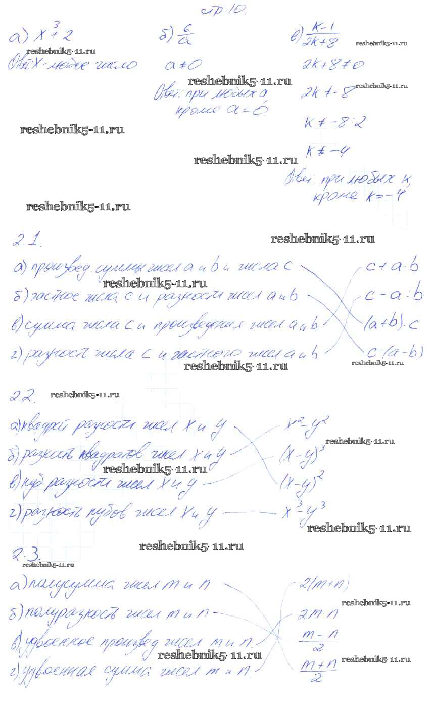 Готовая домашняя работа с ответами по Алгебре за 7 класс Зубарева, Мильштейн Рабочая тетрадь Часть 1, 2 Мнемозина 2019 ФГОС - Часть 1. Страницы 10