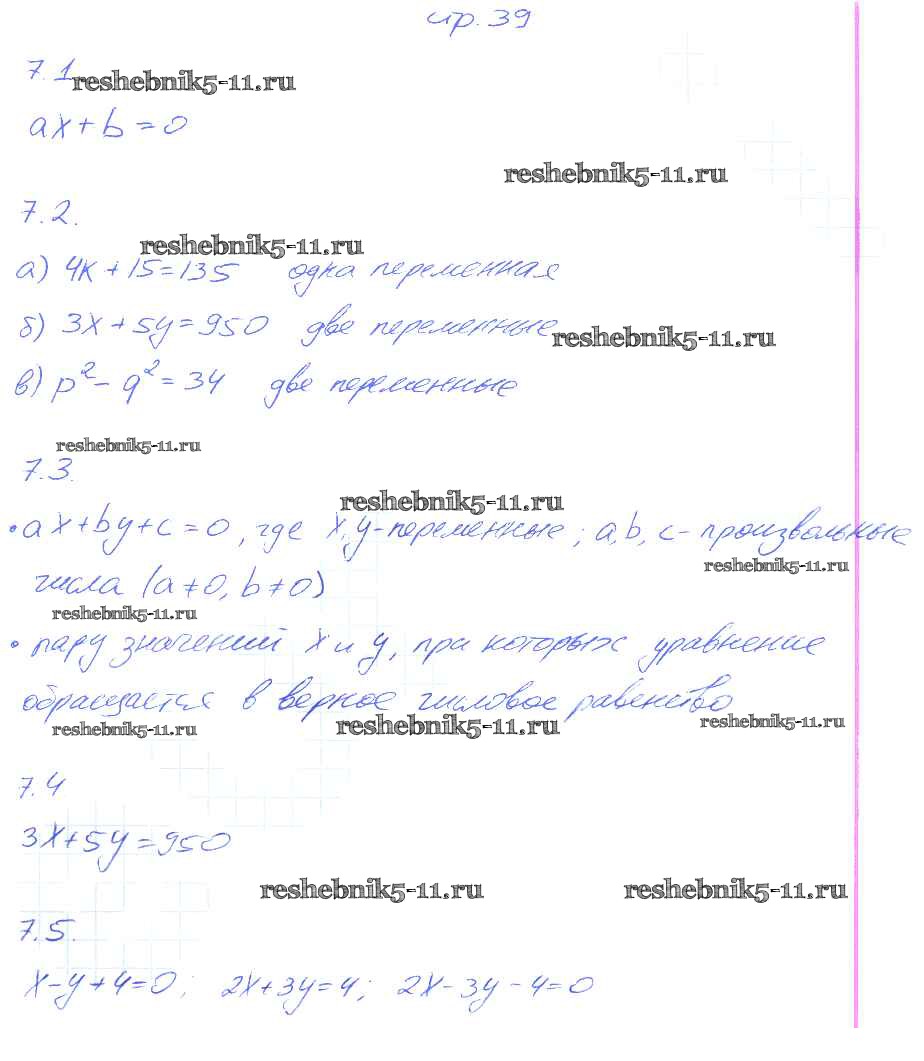 Готовая домашняя работа с ответами по Алгебре за 7 класс Зубарева, Мильштейн Рабочая тетрадь Часть 1, 2 Мнемозина 2019 ФГОС - Часть 1. Страницы 39