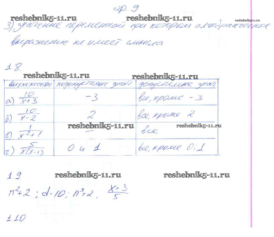 Готовая домашняя работа с ответами по Алгебре за 7 класс Зубарева, Мильштейн Рабочая тетрадь Часть 1, 2 Мнемозина 2019 ФГОС - Часть 1. Страницы 9