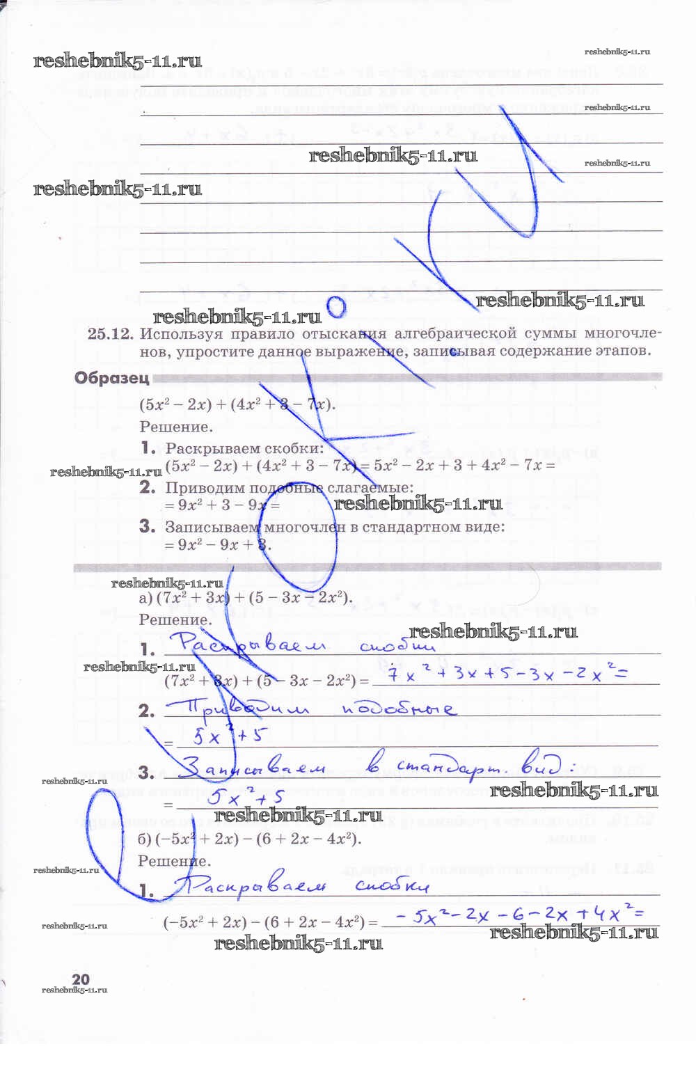 Готовая домашняя работа с ответами по Алгебре за 7 класс Зубарева, Мильштейн Рабочая тетрадь Часть 1, 2 Мнемозина 2019 ФГОС - Часть 2. Страницы 20