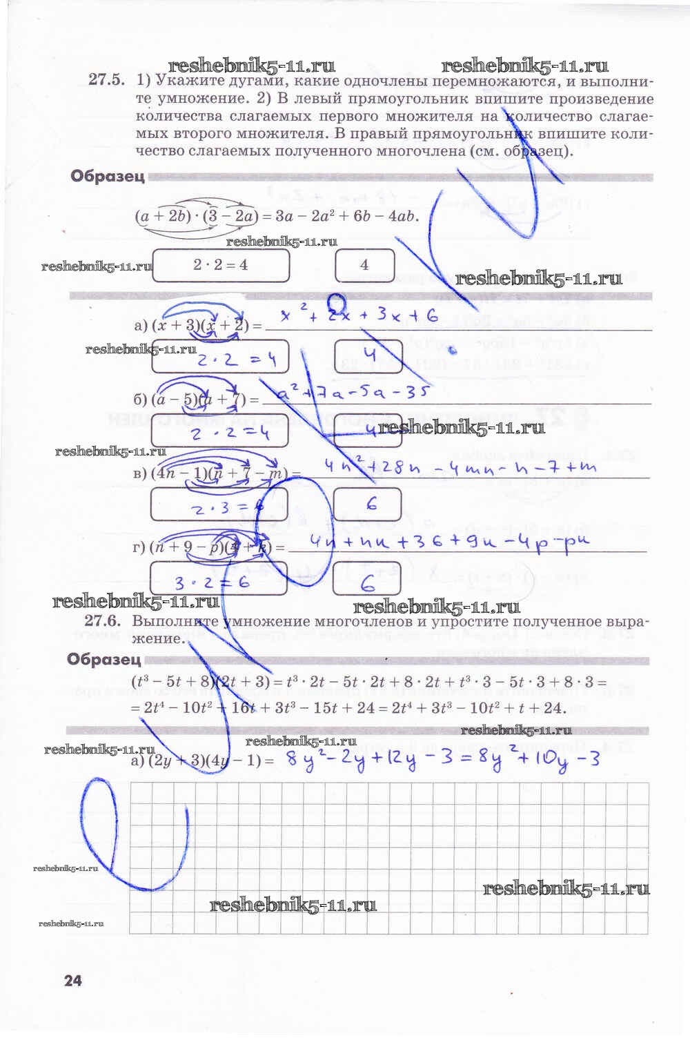 Готовая домашняя работа с ответами по Алгебре за 7 класс Зубарева, Мильштейн Рабочая тетрадь Часть 1, 2 Мнемозина 2019 ФГОС - Часть 2. Страницы 24