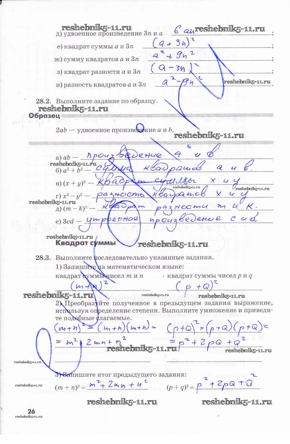 Готовая домашняя работа с ответами по Алгебре за 7 класс Зубарева, Мильштейн Рабочая тетрадь Часть 1, 2 Мнемозина 2019 ФГОС - Часть 2. Страницы 26