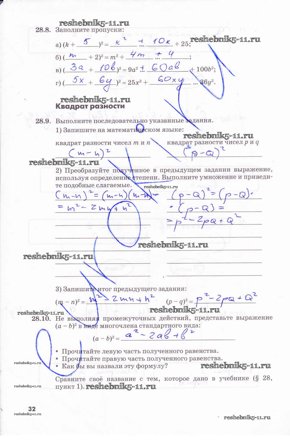 Готовая домашняя работа с ответами по Алгебре за 7 класс Зубарева, Мильштейн Рабочая тетрадь Часть 1, 2 Мнемозина 2019 ФГОС - Часть 2. Страницы 32