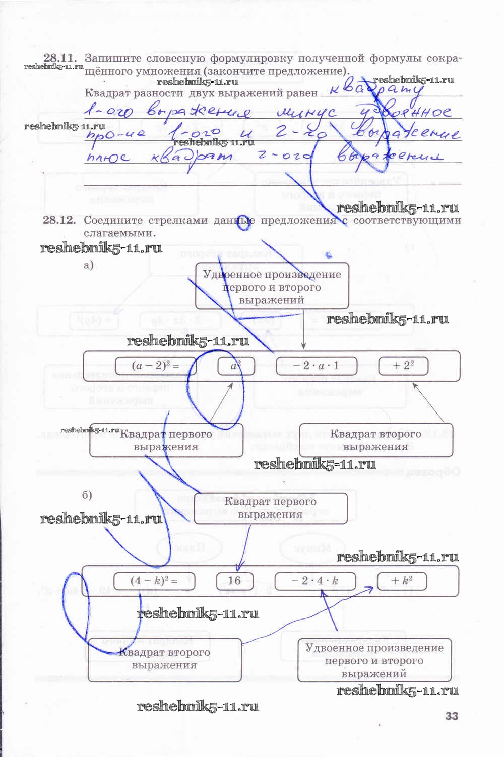 Готовая домашняя работа с ответами по Алгебре за 7 класс Зубарева, Мильштейн Рабочая тетрадь Часть 1, 2 Мнемозина 2019 ФГОС - Часть 2. Страницы 33