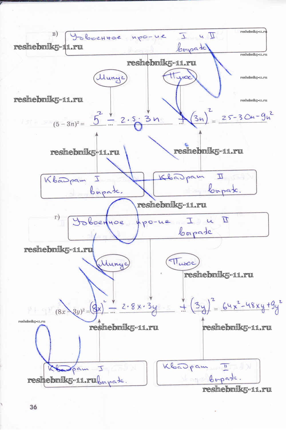 Готовая домашняя работа с ответами по Алгебре за 7 класс Зубарева, Мильштейн Рабочая тетрадь Часть 1, 2 Мнемозина 2019 ФГОС - Часть 2. Страницы 36