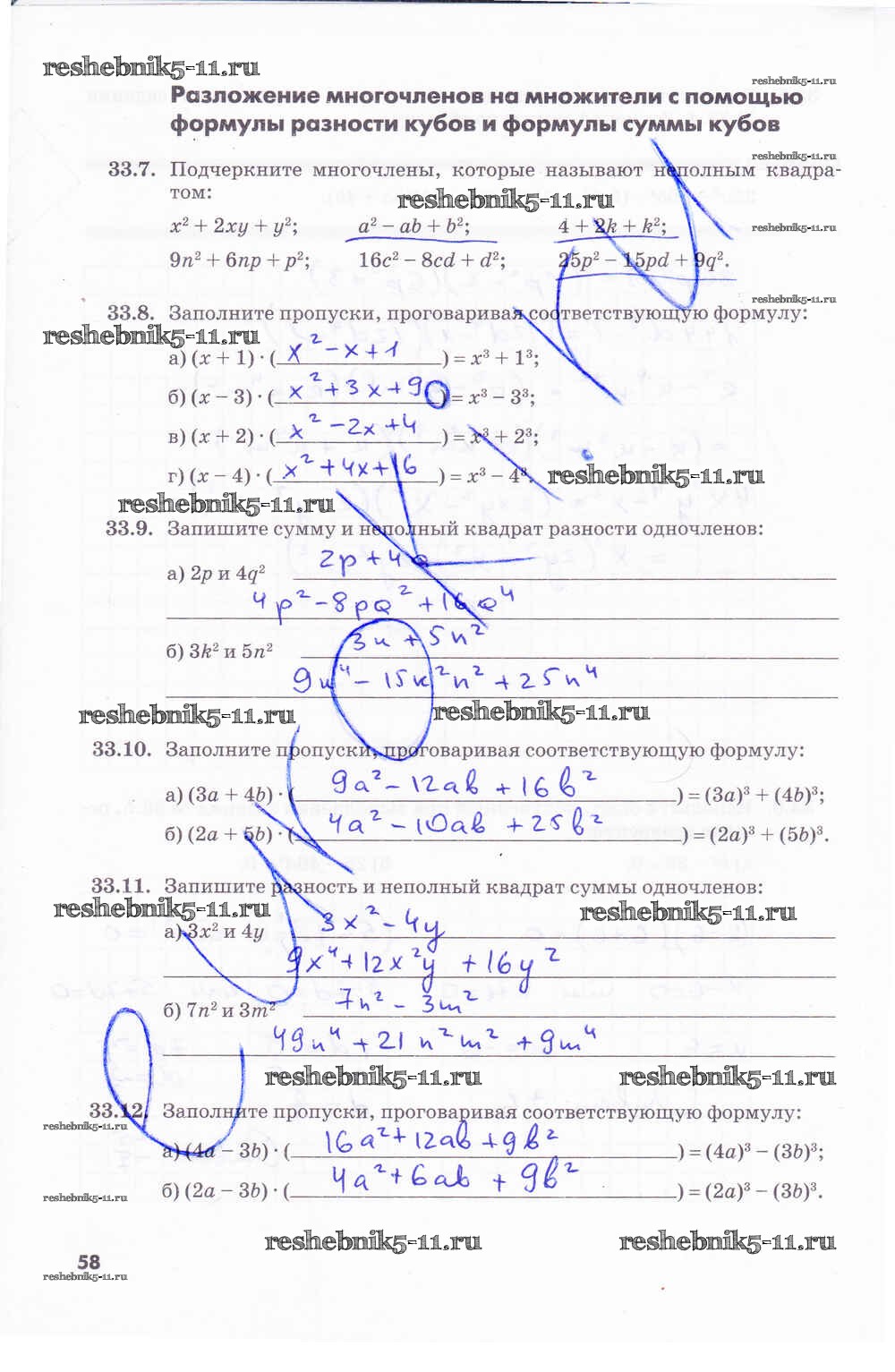 Готовая домашняя работа с ответами по Алгебре за 7 класс Зубарева, Мильштейн Рабочая тетрадь Часть 1, 2 Мнемозина 2019 ФГОС - Часть 2. Страницы 58