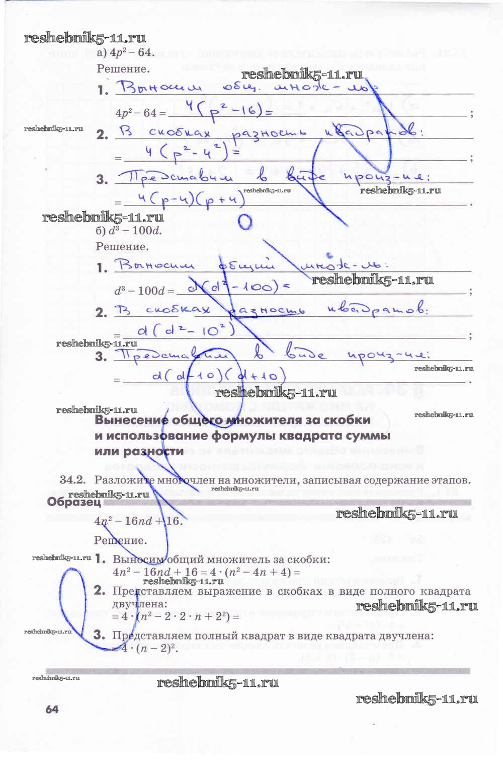 Готовая домашняя работа с ответами по Алгебре за 7 класс Зубарева, Мильштейн Рабочая тетрадь Часть 1, 2 Мнемозина 2019 ФГОС - Часть 2. Страницы 64