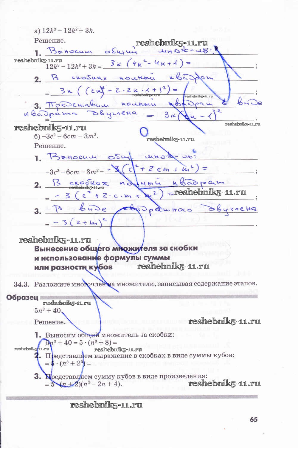 Готовая домашняя работа с ответами по Алгебре за 7 класс Зубарева, Мильштейн Рабочая тетрадь Часть 1, 2 Мнемозина 2019 ФГОС - Часть 2. Страницы 65