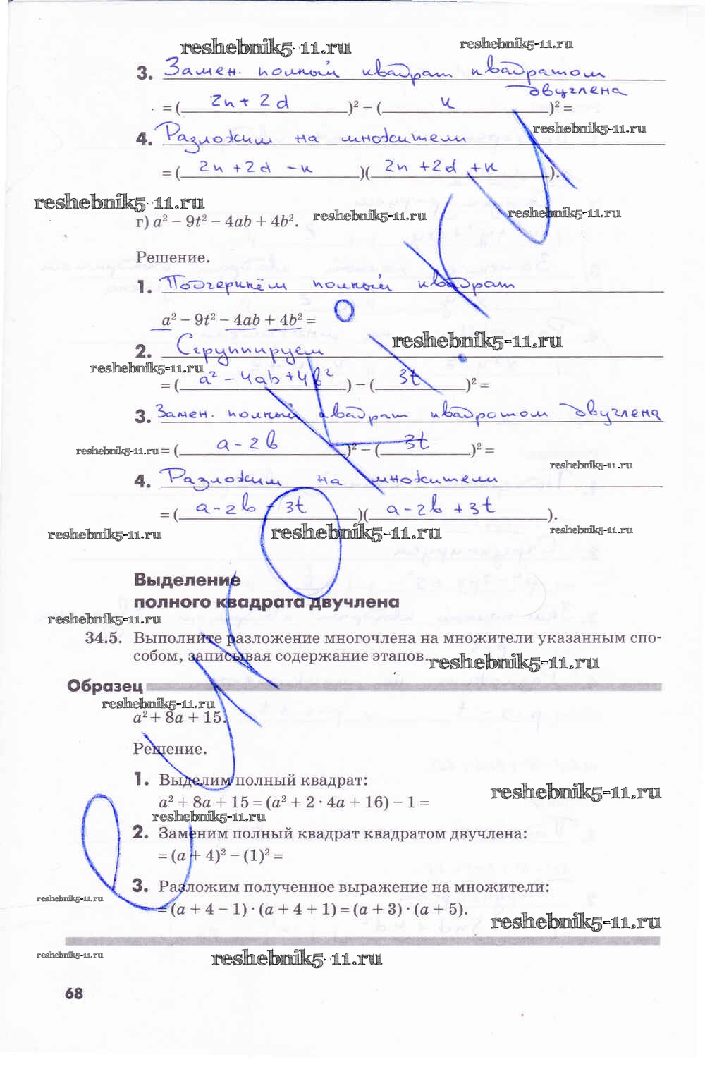 Готовая домашняя работа с ответами по Алгебре за 7 класс Зубарева, Мильштейн Рабочая тетрадь Часть 1, 2 Мнемозина 2019 ФГОС - Часть 2. Страницы 68