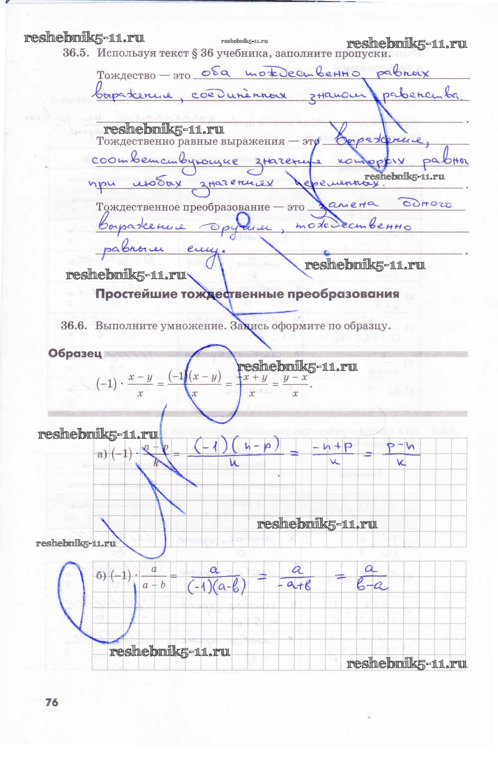 Готовая домашняя работа с ответами по Алгебре за 7 класс Зубарева, Мильштейн Рабочая тетрадь Часть 1, 2 Мнемозина 2019 ФГОС - Часть 2. Страницы 76