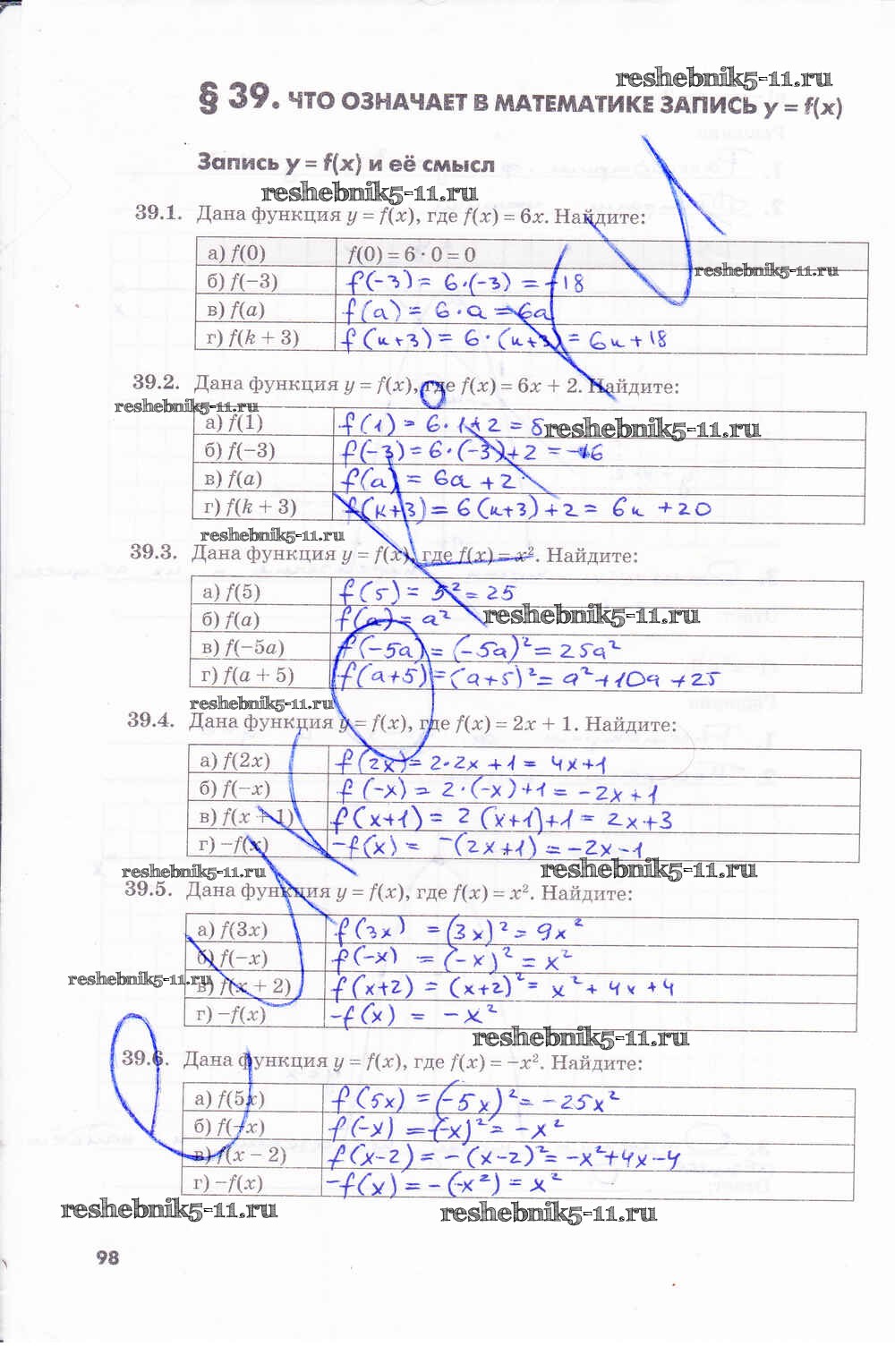 Готовая домашняя работа с ответами по Алгебре за 7 класс Зубарева, Мильштейн Рабочая тетрадь Часть 1, 2 Мнемозина 2019 ФГОС - Часть 2. Страницы 98