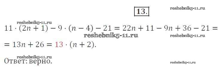 Готовая домашняя работа с ответами по Алгебре за 7 класс Миндюк, Шлыкова Рабочая тетрадь УМК Часть 1, 2 Просвещение 2017 ФГОС - §5. Тождества. Тождественное преобразование выражений 13