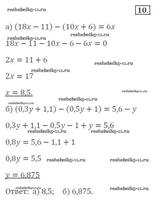 Готовая домашняя работа с ответами по Алгебре за 7 класс Миндюк, Шлыкова Рабочая тетрадь УМК Часть 1, 2 Просвещение 2017 ФГОС - §7. Линейное уравнение с одной переменной 10