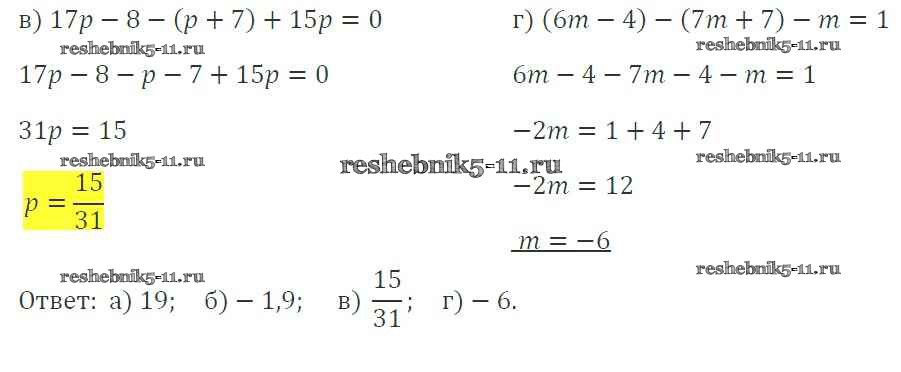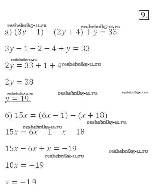 Готовая домашняя работа с ответами по Алгебре за 7 класс Миндюк, Шлыкова Рабочая тетрадь УМК Часть 1, 2 Просвещение 2017 ФГОС - §7. Линейное уравнение с одной переменной 9