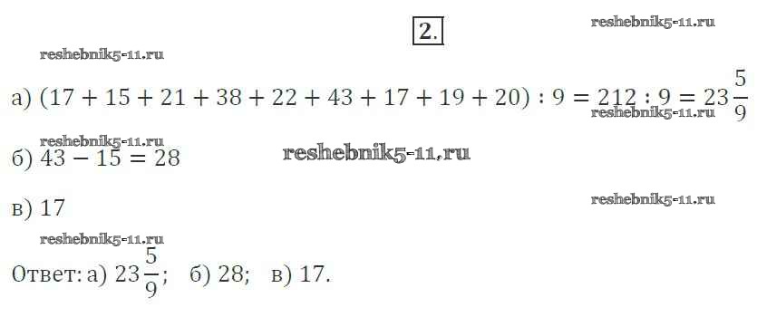 Готовая домашняя работа с ответами по Алгебре за 7 класс Миндюк, Шлыкова Рабочая тетрадь УМК Часть 1, 2 Просвещение 2017 ФГОС - §9. Среднее арифметическое, размах и мода 2