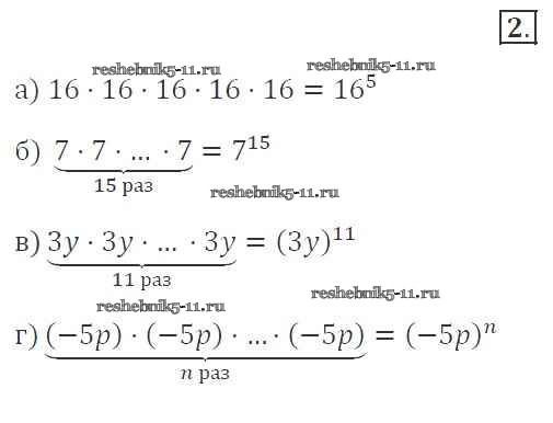 Готовая домашняя работа с ответами по Алгебре за 7 класс Миндюк, Шлыкова Рабочая тетрадь УМК Часть 1, 2 Просвещение 2017 ФГОС - §16. Определение степени с натуральным показателем 2