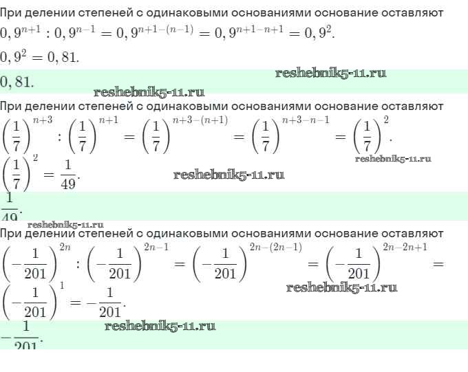 Готовая домашняя работа с ответами по Алгебре за 7 класс Миндюк, Шлыкова Рабочая тетрадь УМК Часть 1, 2 Просвещение 2017 ФГОС - §17. Умножение и деление степеней 11