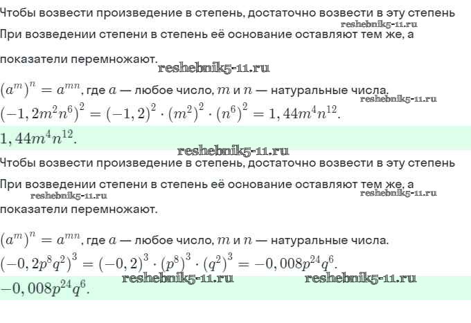 Готовая домашняя работа с ответами по Алгебре за 7 класс Миндюк, Шлыкова Рабочая тетрадь УМК Часть 1, 2 Просвещение 2017 ФГОС - §18. Возведение в степень произведения 1