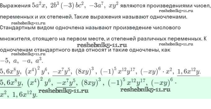 Готовая домашняя работа с ответами по Алгебре за 7 класс Миндюк, Шлыкова Рабочая тетрадь УМК Часть 1, 2 Просвещение 2017 ФГОС - §19. Одночлен и его стандартный вид 2