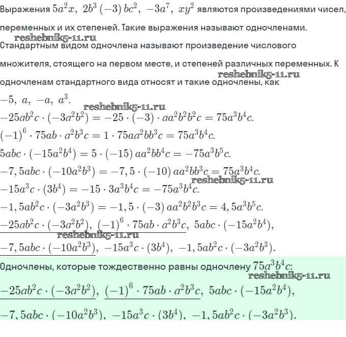 Готовая домашняя работа с ответами по Алгебре за 7 класс Миндюк, Шлыкова Рабочая тетрадь УМК Часть 1, 2 Просвещение 2017 ФГОС - §19. Одночлен и его стандартный вид 8