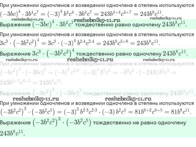 Готовая домашняя работа с ответами по Алгебре за 7 класс Миндюк, Шлыкова Рабочая тетрадь УМК Часть 1, 2 Просвещение 2017 ФГОС - §20. Умножение одночленов. Возведение одночлена в степень 11