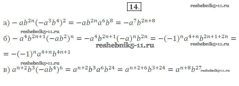 Готовая домашняя работа с ответами по Алгебре за 7 класс Миндюк, Шлыкова Рабочая тетрадь УМК Часть 1, 2 Просвещение 2017 ФГОС - §20. Умножение одночленов. Возведение одночлена в степень 14