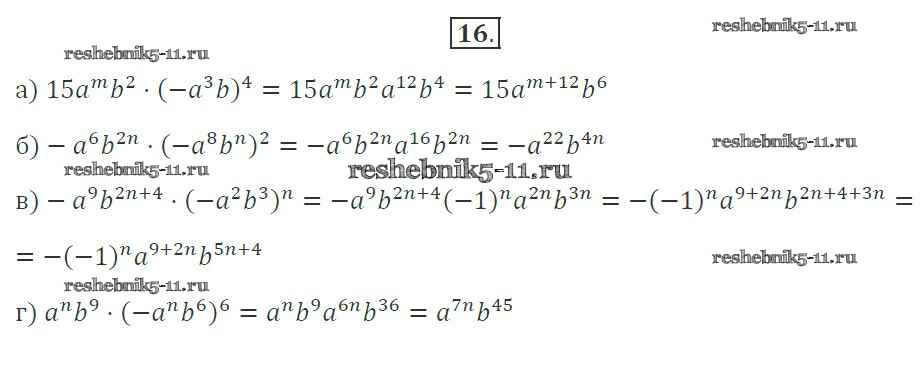 Готовая домашняя работа с ответами по Алгебре за 7 класс Миндюк, Шлыкова Рабочая тетрадь УМК Часть 1, 2 Просвещение 2017 ФГОС - §20. Умножение одночленов. Возведение одночлена в степень 16