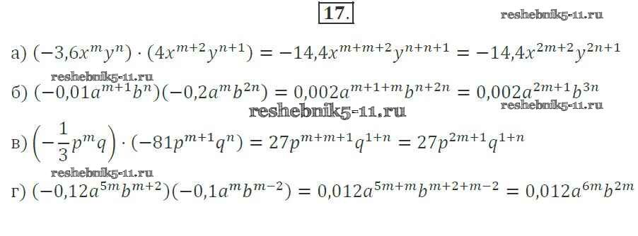 Готовая домашняя работа с ответами по Алгебре за 7 класс Миндюк, Шлыкова Рабочая тетрадь УМК Часть 1, 2 Просвещение 2017 ФГОС - §20. Умножение одночленов. Возведение одночлена в степень 17