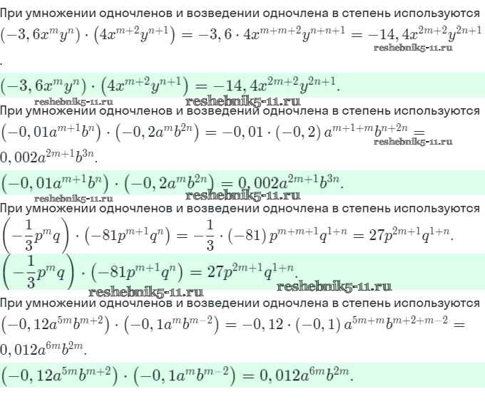 §20. Умножение одночленов. Возведение одночлена в степень