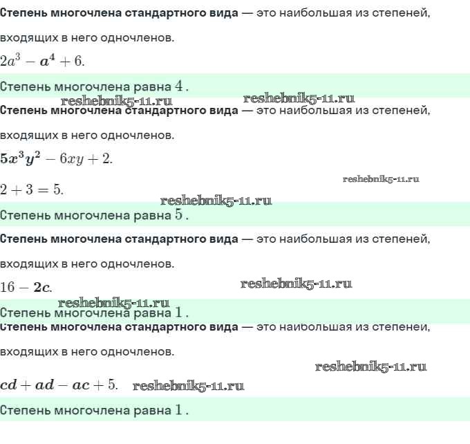 Готовая домашняя работа с ответами по Алгебре за 7 класс Миндюк, Шлыкова Рабочая тетрадь УМК Часть 1, 2 Просвещение 2017 ФГОС - §22. Многочлен и его стандартный вид 7