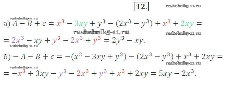 Готовая домашняя работа с ответами по Алгебре за 7 класс Миндюк, Шлыкова Рабочая тетрадь УМК Часть 1, 2 Просвещение 2017 ФГОС - §23. Сложение и вычитание многочленов 12