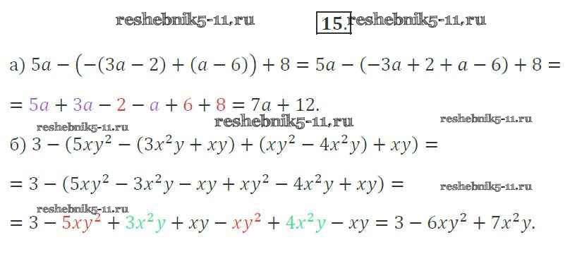 Готовая домашняя работа с ответами по Алгебре за 7 класс Миндюк, Шлыкова Рабочая тетрадь УМК Часть 1, 2 Просвещение 2017 ФГОС - §23. Сложение и вычитание многочленов 15