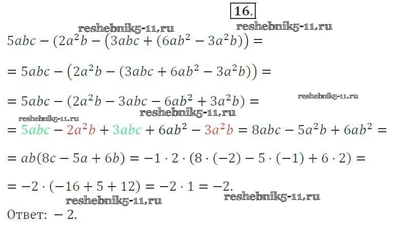 Готовая домашняя работа с ответами по Алгебре за 7 класс Миндюк, Шлыкова Рабочая тетрадь УМК Часть 1, 2 Просвещение 2017 ФГОС - §23. Сложение и вычитание многочленов 16