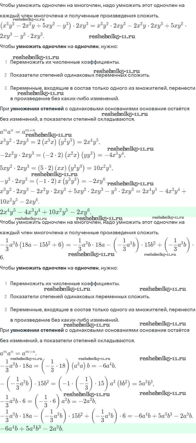 Готовая домашняя работа с ответами по Алгебре за 7 класс Миндюк, Шлыкова Рабочая тетрадь УМК Часть 1, 2 Просвещение 2017 ФГОС - §24. Умножение одночлена на многочлен 2