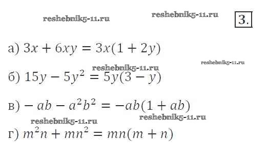 Готовая домашняя работа с ответами по Алгебре за 7 класс Миндюк, Шлыкова Рабочая тетрадь УМК Часть 1, 2 Просвещение 2017 ФГОС - §25. Вынесение общего множителя за скобки 3