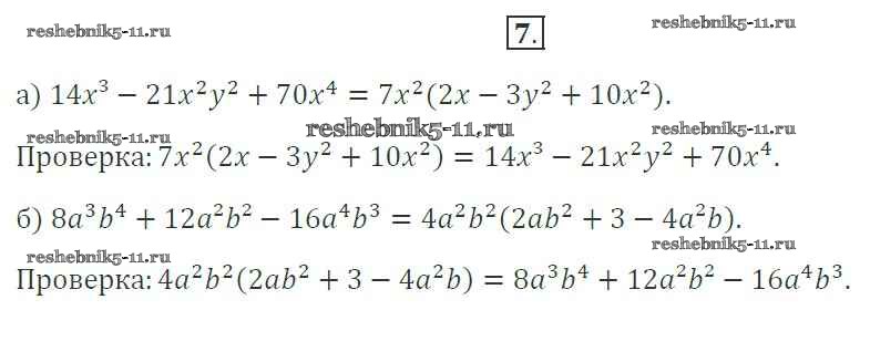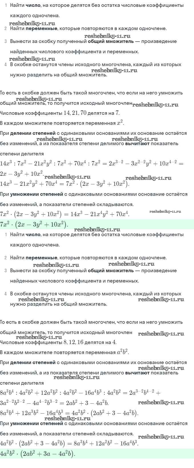 Готовая домашняя работа с ответами по Алгебре за 7 класс Миндюк, Шлыкова Рабочая тетрадь УМК Часть 1, 2 Просвещение 2017 ФГОС - §25. Вынесение общего множителя за скобки 7