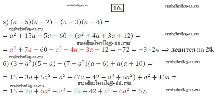 Готовая домашняя работа с ответами по Алгебре за 7 класс Миндюк, Шлыкова Рабочая тетрадь УМК Часть 1, 2 Просвещение 2017 ФГОС - §26. Умножение многочлена на многочлен 16