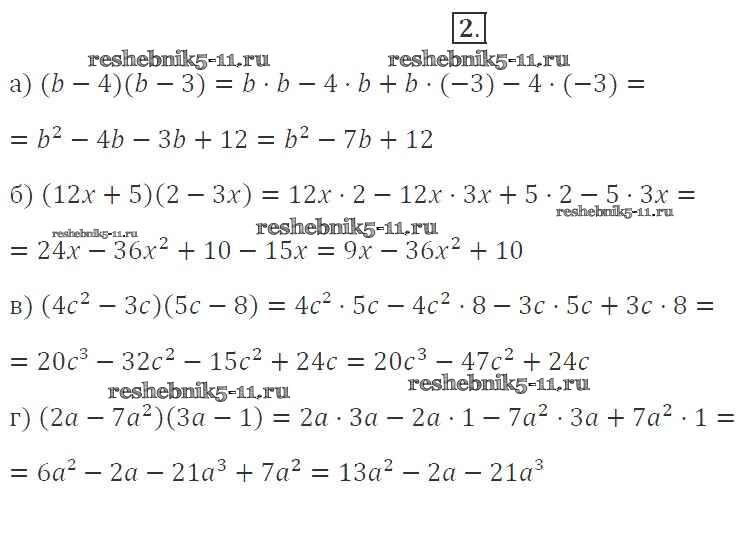 Готовая домашняя работа с ответами по Алгебре за 7 класс Миндюк, Шлыкова Рабочая тетрадь УМК Часть 1, 2 Просвещение 2017 ФГОС - §26. Умножение многочлена на многочлен 2