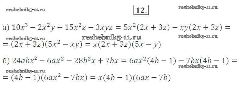 Готовая домашняя работа с ответами по Алгебре за 7 класс Миндюк, Шлыкова Рабочая тетрадь УМК Часть 1, 2 Просвещение 2017 ФГОС - §27. Разложение многочлена на множители способом группировки 12