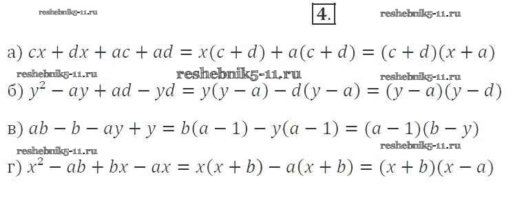 Готовая домашняя работа с ответами по Алгебре за 7 класс Миндюк, Шлыкова Рабочая тетрадь УМК Часть 1, 2 Просвещение 2017 ФГОС - §27. Разложение многочлена на множители способом группировки 4