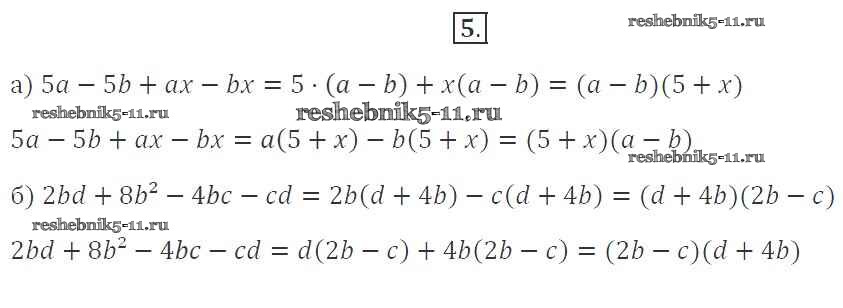 Готовая домашняя работа с ответами по Алгебре за 7 класс Миндюк, Шлыкова Рабочая тетрадь УМК Часть 1, 2 Просвещение 2017 ФГОС - §27. Разложение многочлена на множители способом группировки 5