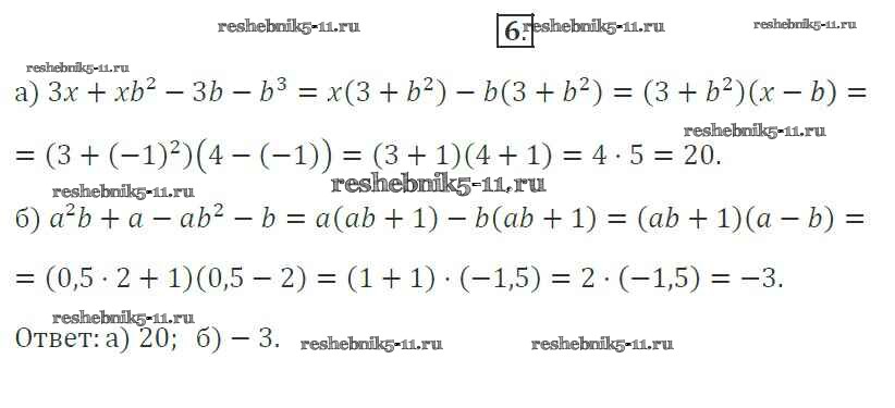Готовая домашняя работа с ответами по Алгебре за 7 класс Миндюк, Шлыкова Рабочая тетрадь УМК Часть 1, 2 Просвещение 2017 ФГОС - §27. Разложение многочлена на множители способом группировки 6